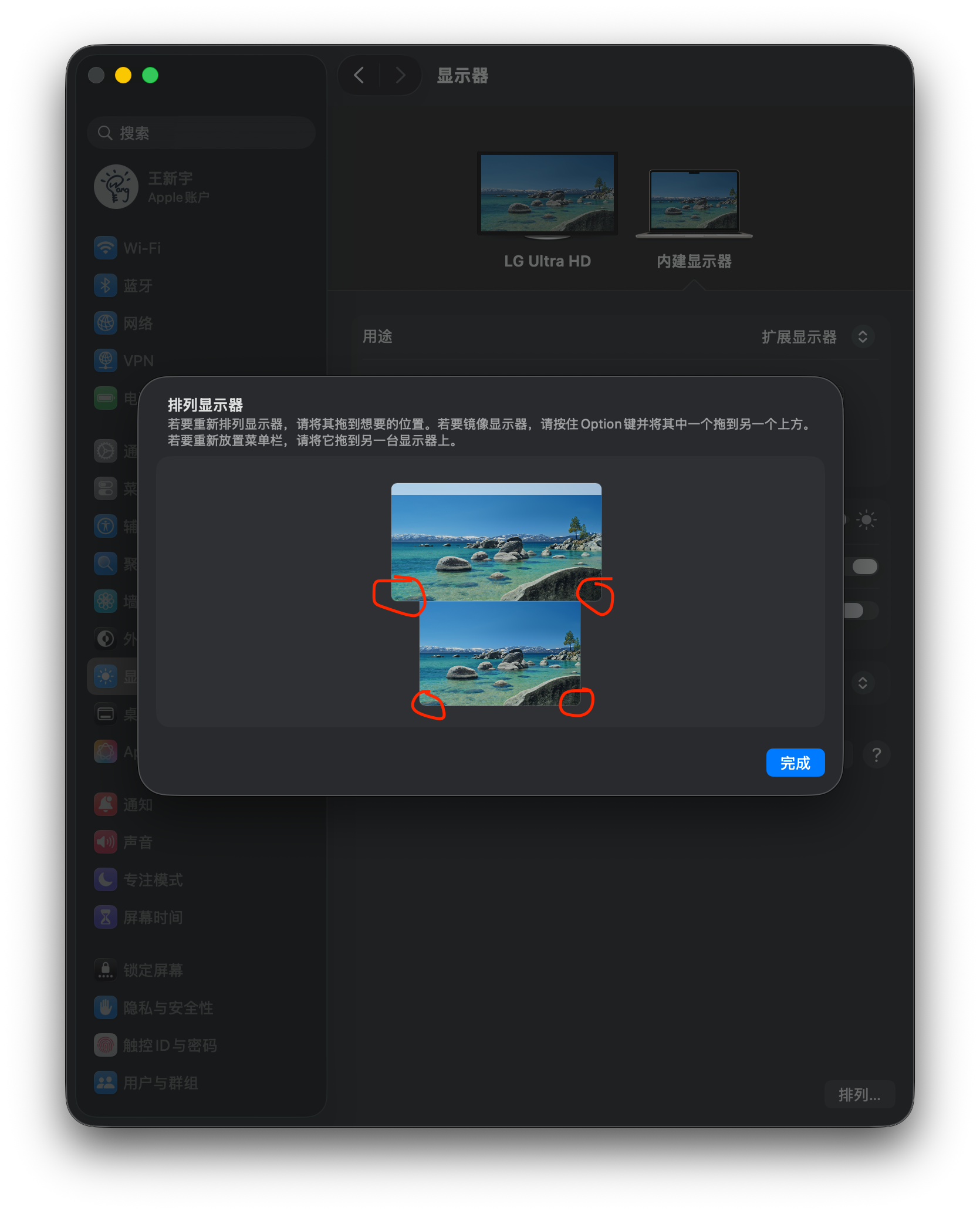 扩展屏在 macbook 的左边或右边时,dock 相应放在左侧或右侧;同时再开启「台前调度」,它会在每个屏幕都显示