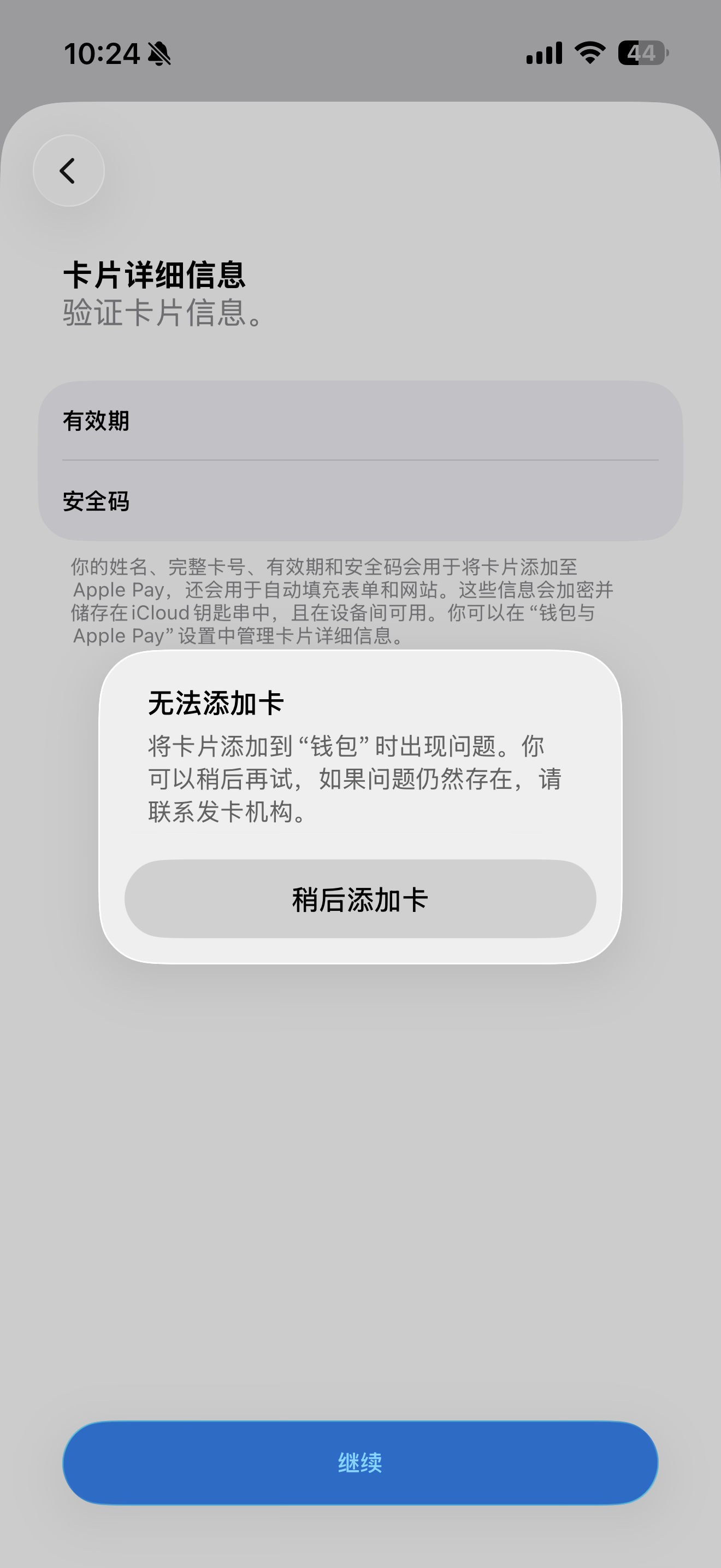 orangy OP @unneeded #3 尝试绑定 VISA 的时候不是像万事达一样提示尚不支持此卡片,而是只报错,“无法添加卡”,并提示稍后再试,看来是真的…