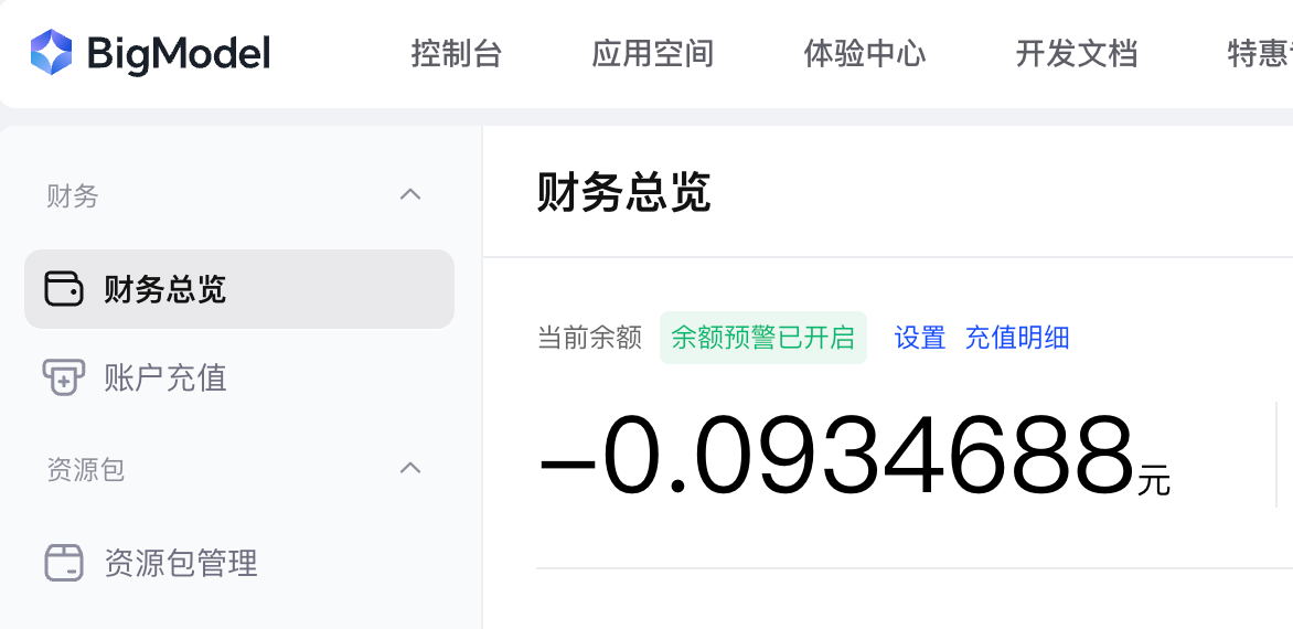 bigmodel 把我的余额干成负数了